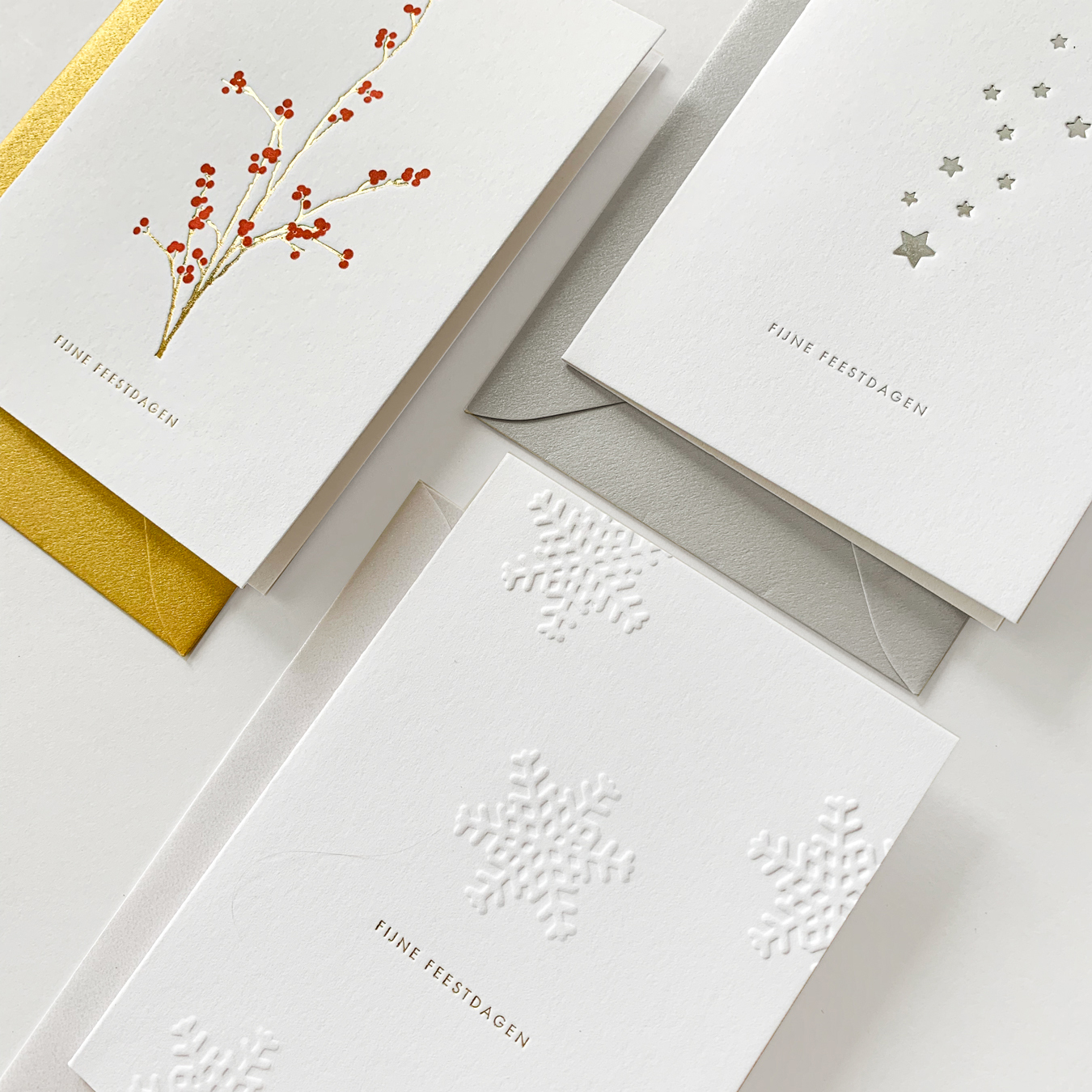 Stuur warme kerstwensen met deze elegante set luxe kerstkaarten. Elk ontwerp is gedrukt op hoogwaardig, stevig papier en afgewerkt met verfijnde details zoals embossing en subtiele kleuren. De kaarten combineren minimalisme met een feestelijke uitstraling, perfect voor een stijlvolle kerstgroet.